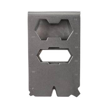 Clip para billetes con diseño compacto que integra múltiples herramientas para uso diario. Fabricado en acero de resorte, ofrece resistencia, funcionalidad y portabilidad en un solo accesorio.