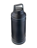 Botella térmica de 32 oz. color negro, capaz de contener bebidas calientes o frías. Diseñada de manera robusta con acero inoxidable de grado profesional 18/8, acabado con recubrimiento en polvo a prueba de sudor que garantiza no resbalarse de las manos, además de una base de goma antideslizante para mayor durabilidad.