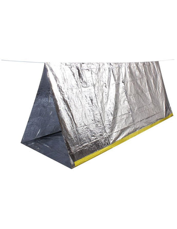 Carpa de supervivencia reflectante brinda protección para dos adultos contra los elementos en una situación de emergencia, debido a que el material reflectante ayuda a conservar el calor corporal. La tienda contiene una cuerda de nylon de 3 metros de largo y es compacta y liviana para un fácil almacenamiento. Ideal para una bolsa de insectos o un kit de emergencia.