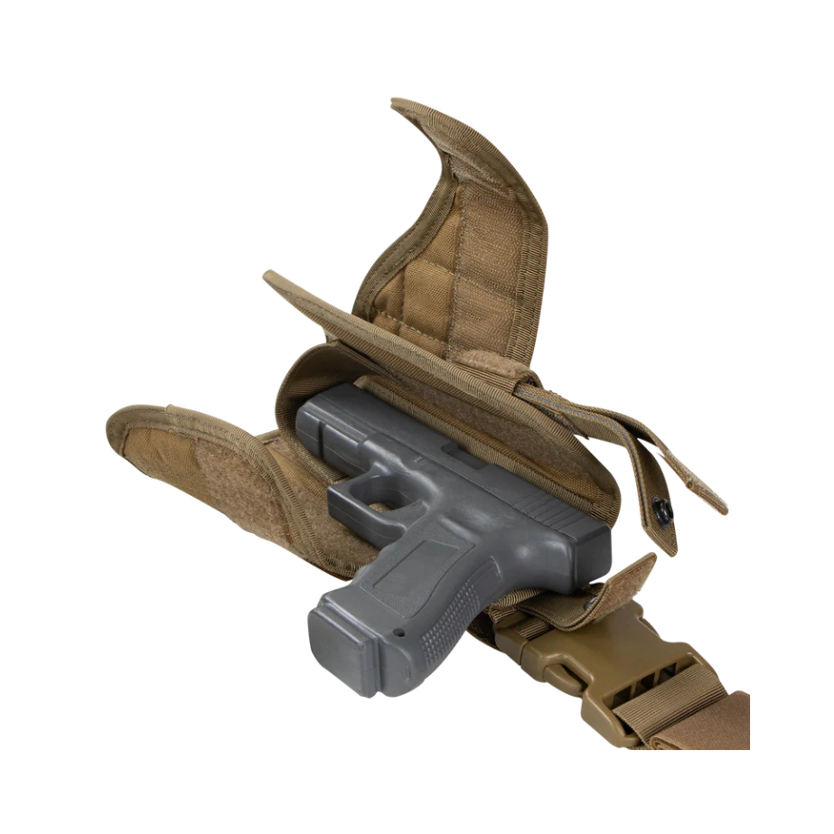- Compatible con montaje en plataforma MOLLE y configuración ambidiestra según modelo