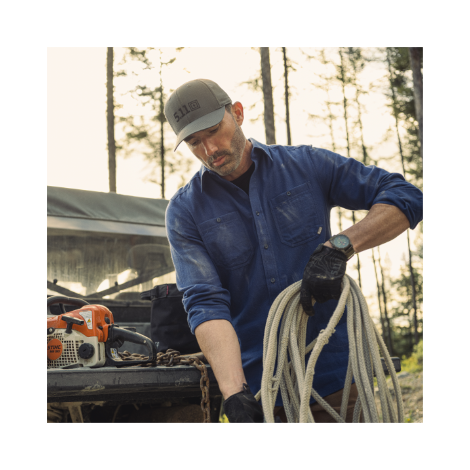 Con el logo 5.11 bordado al frente y el mensaje "Always Be Ready" en la parte trasera, esta gorra está hecha para quienes viven preparados.